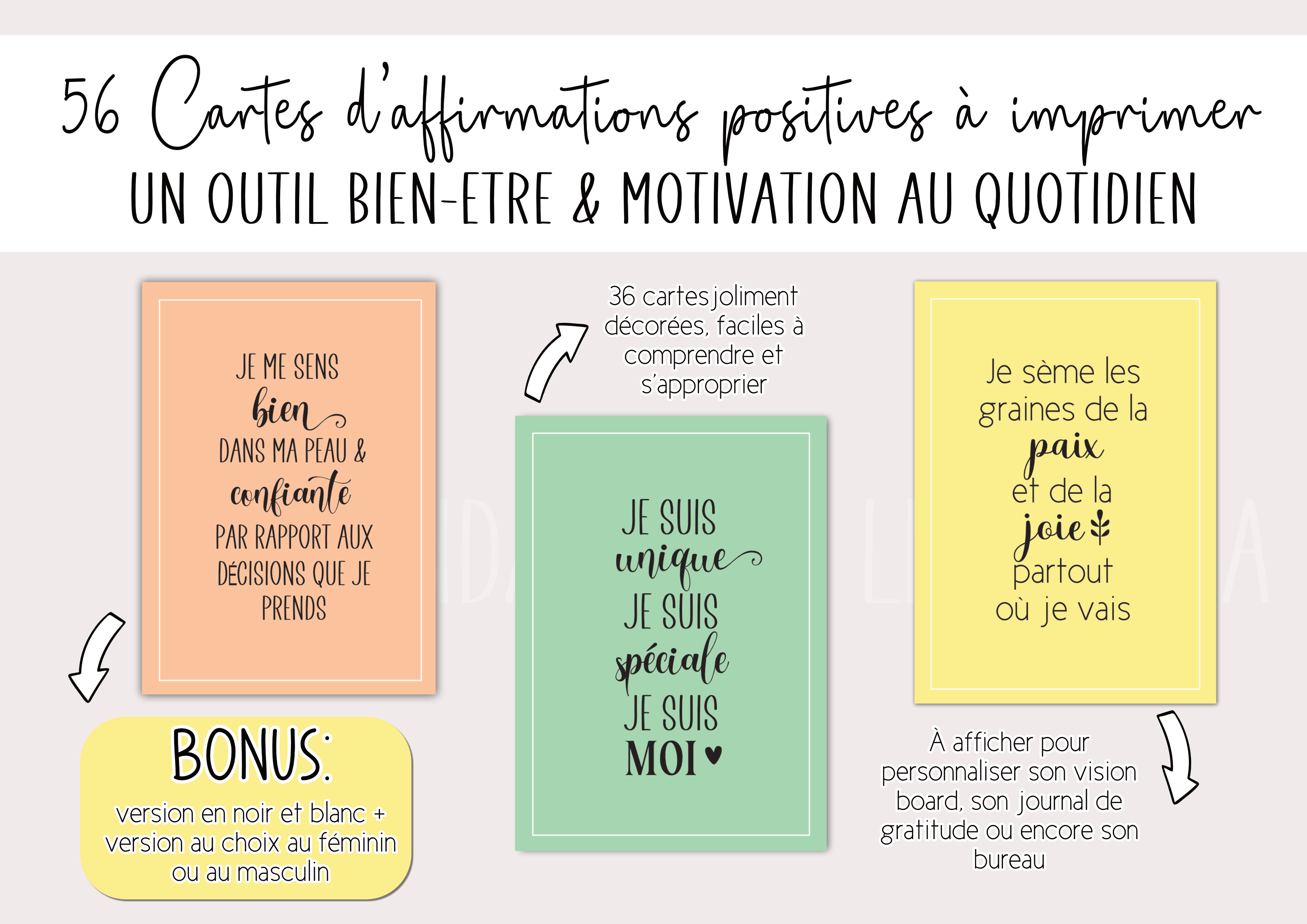 • 56 Cartes d’Affirmations positives à télécharger et imprimer