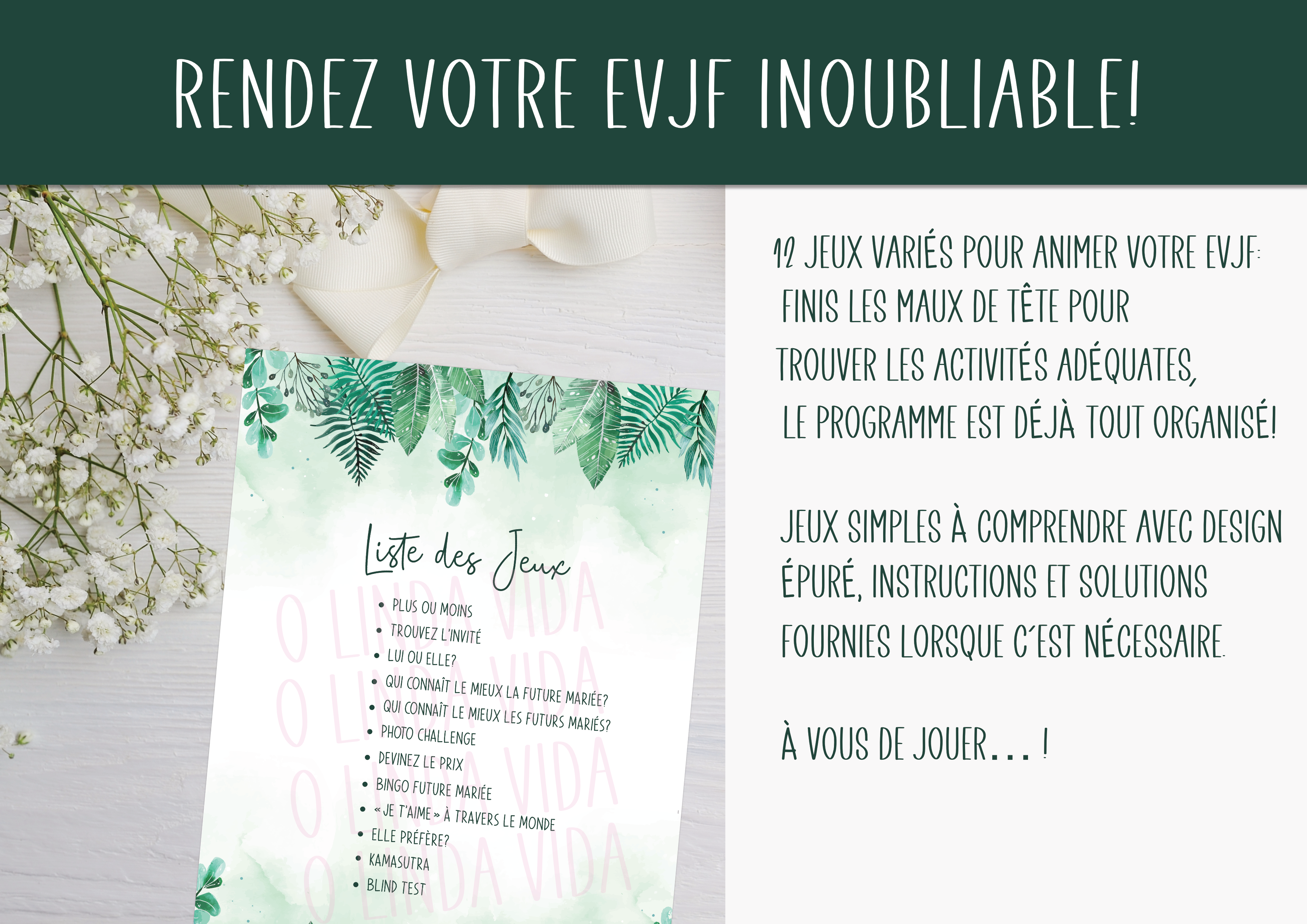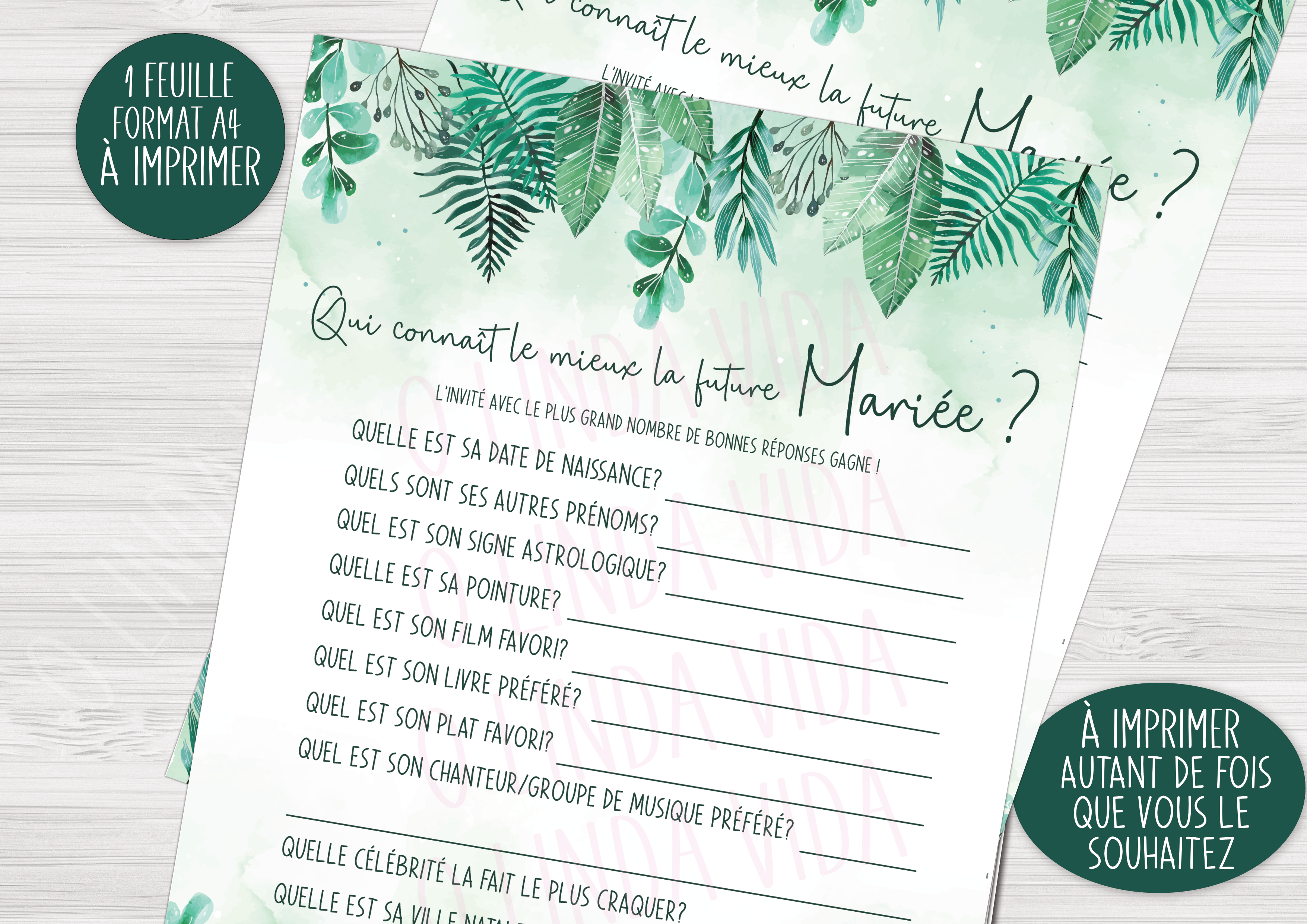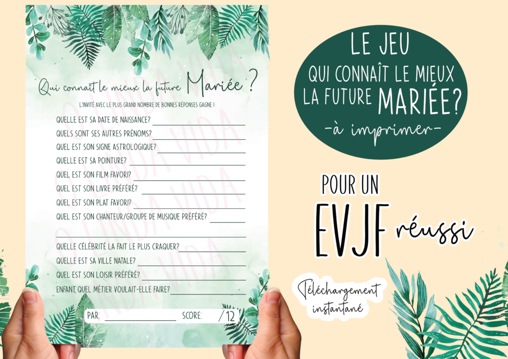 Ajoutez une touche unique à votre EVJF avec notre pack de 12 jeux imprimables, spécialement conçus pour rendre votre événement inoubliable !
